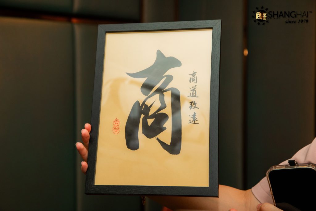 值得一提的是,本次活动获得多方赞助与支持,共同打造一场兼具品质与温度的精英聚会。茅台赞助人 Jeff Chin 为活动提供名酒支持,以岁月沉淀的醇厚象征企业经营的格局与坚持;花卉布置由 Chapter Ju 精心打造,以雅致设计点缀现场空间,提升整体氛围质感;此外,伴手礼则由 Yi Studio 赞助,为每一位出席企业家定制书法牌匾,将文化艺术与企业精神相融合,赋予本次聚会更具纪念意义的价值。